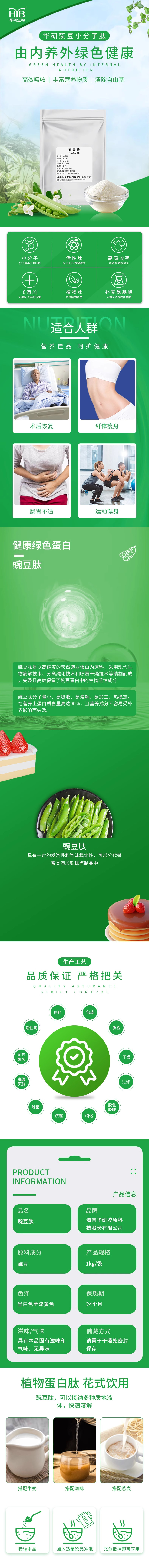 海南华研食品级豌豆肽小分子豌豆低聚肽水解蛋白豌豆原料厂家正品