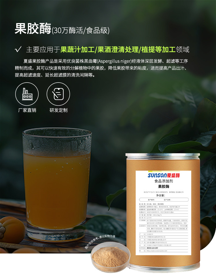 夏盛食品级果胶酶30万u/g果蔬汁加工 促澄清降粘度酶制剂