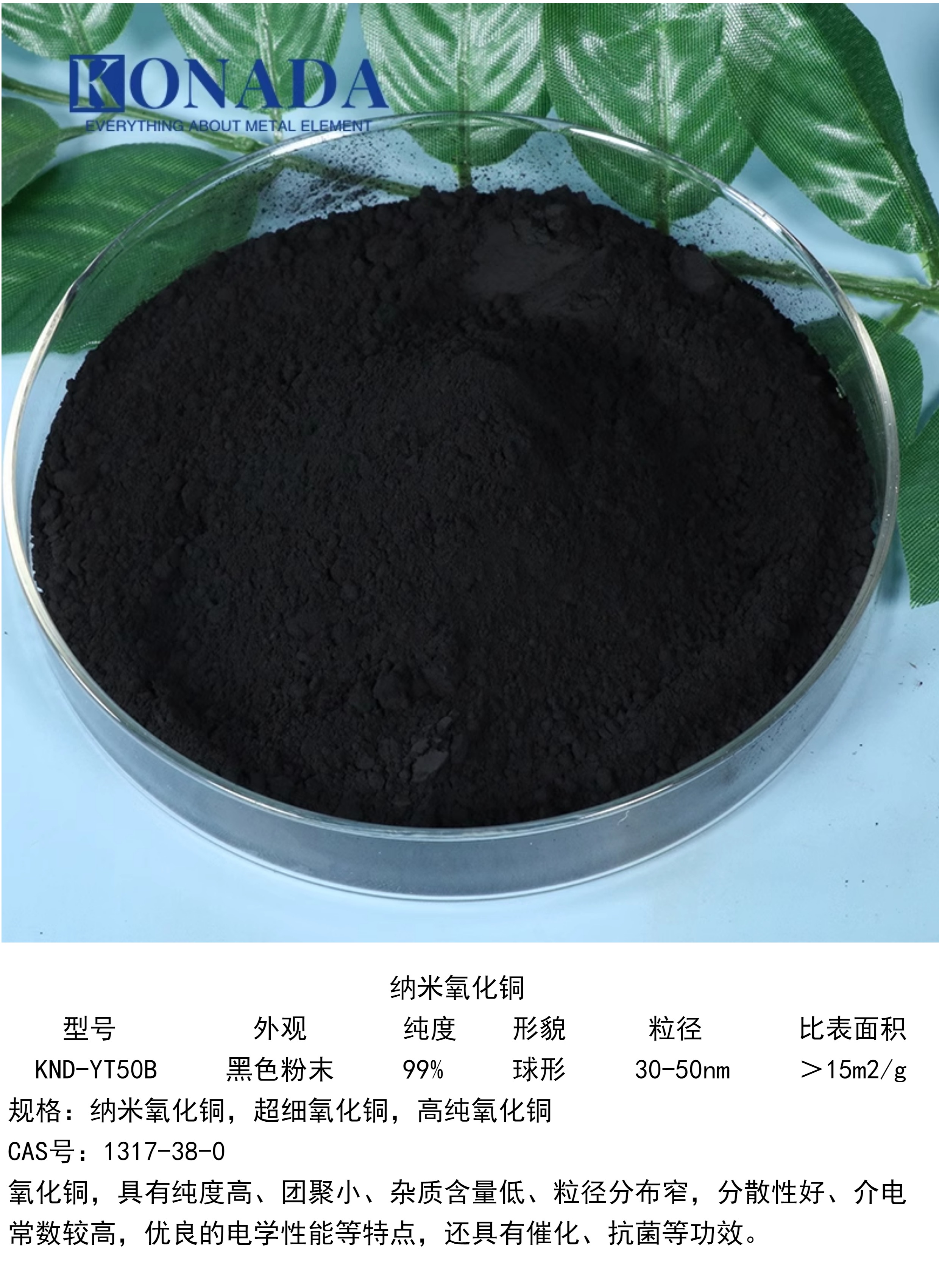 30-50nm活性氧化铜粉CuO重质氧化铜 球形纳米氧化铜粉末 厂家直供