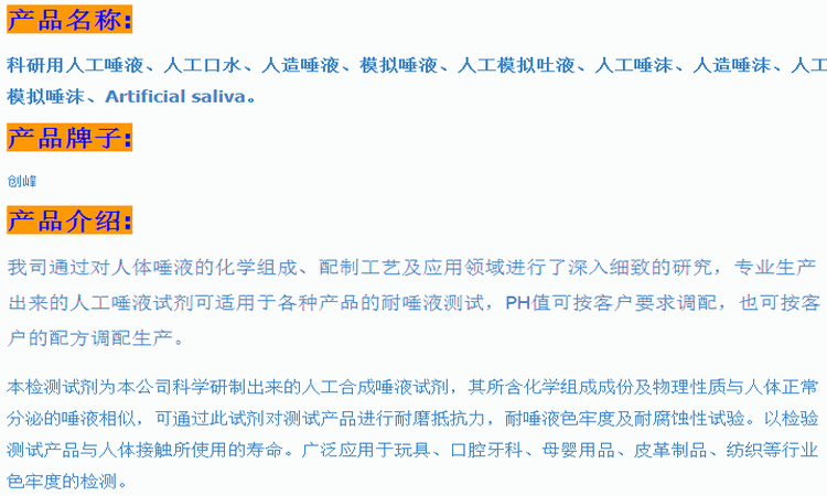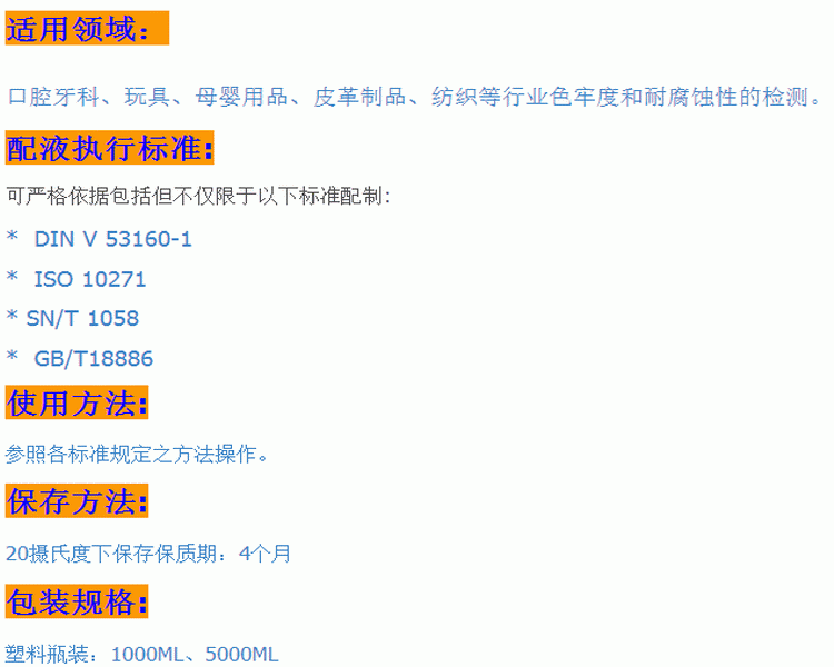 口腔用品耐腐蚀试验专用人工唾液ISO人造口水模拟合成吐液可订制