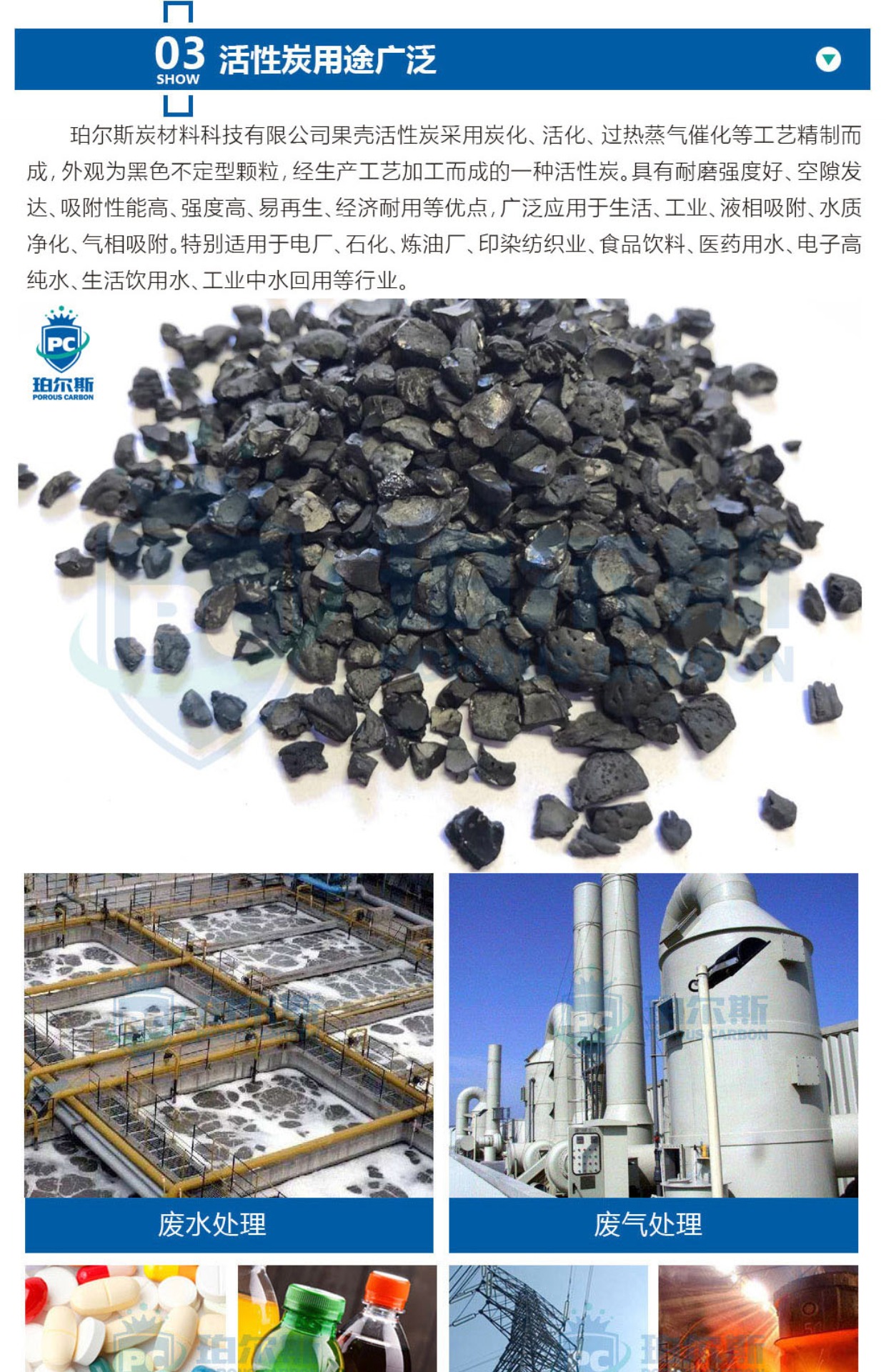 珀尔斯炭材料桃壳颗粒活性炭工业纯水处理矿泉水饮用水净化果壳炭