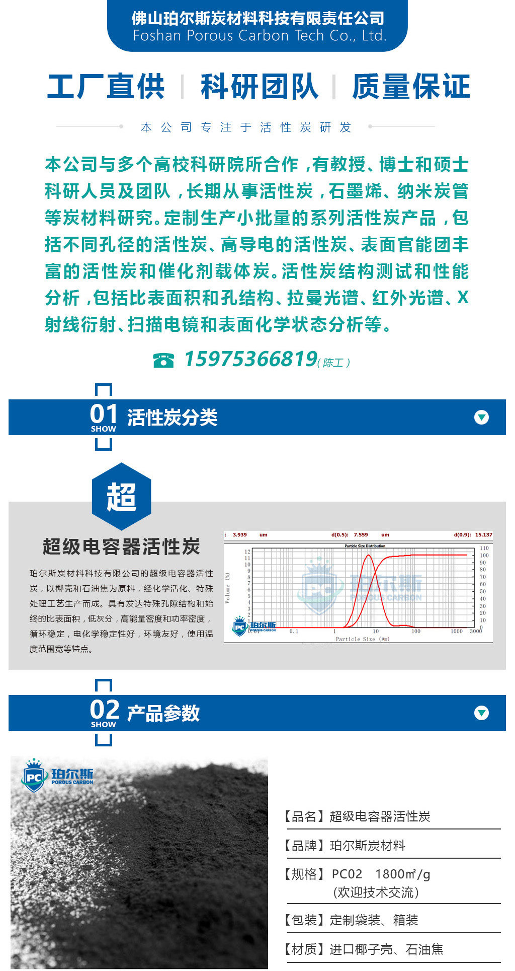 珀尔斯炭材料超级电容炭1800㎡导电炭黑高性能煤基锂硫电池活性炭