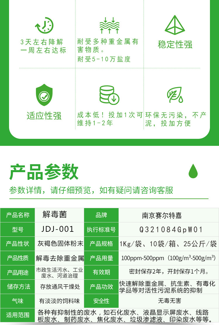 解毒菌种生物菌剂解除抑制重金属速降分解有害物质恢复污泥活性