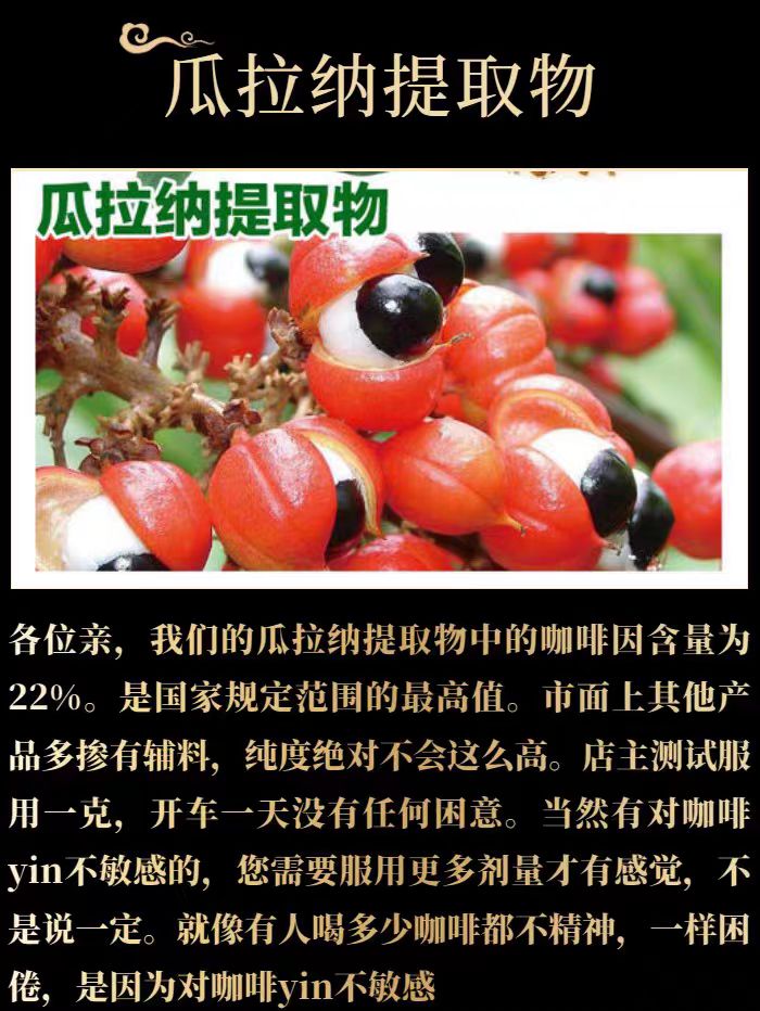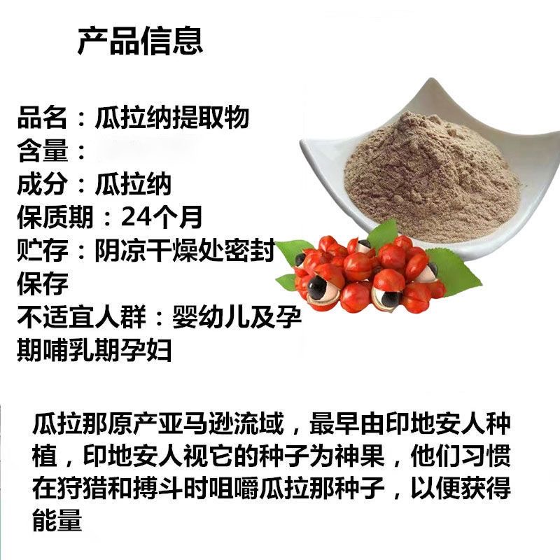 瓜拉纳果提取物粉 巴西瓜拉那咖啡因22%运动爆发力补充剂正品包邮