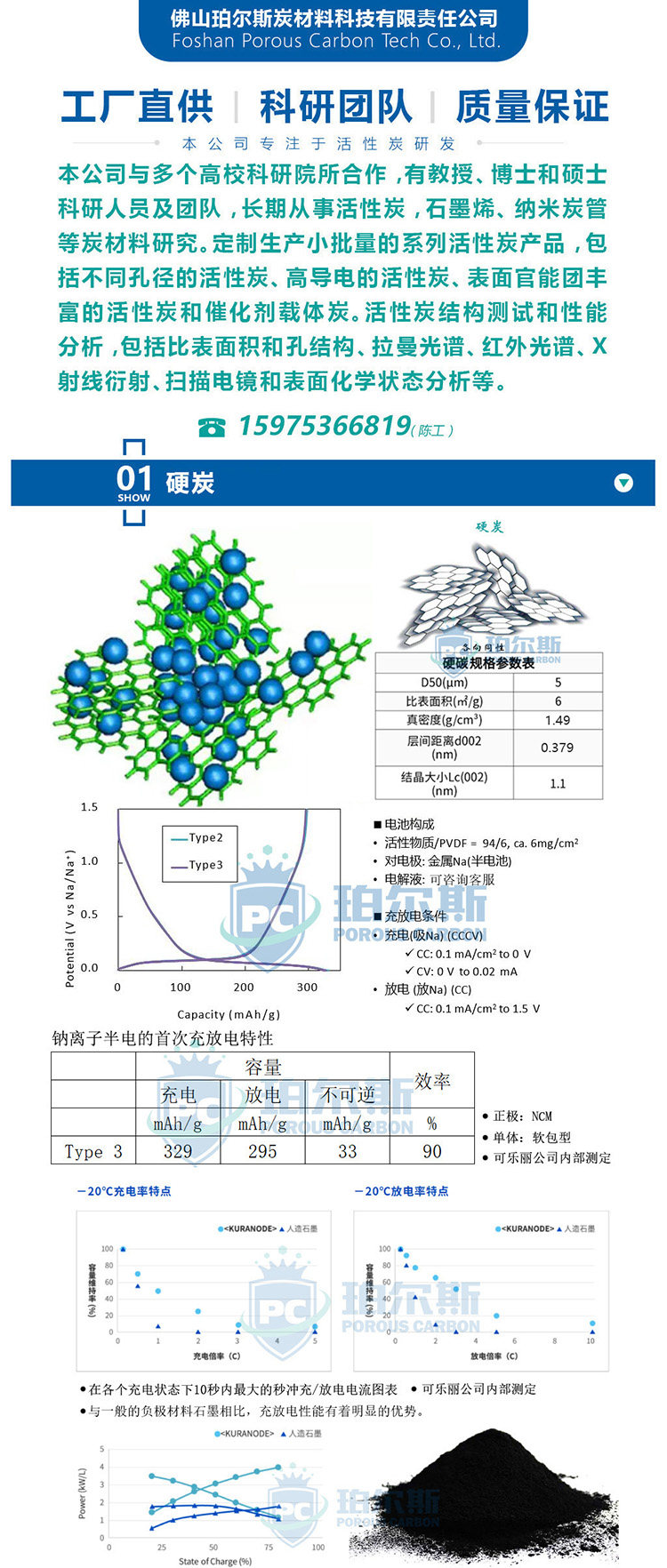 可乐丽硬碳 Type 3 钠电用硬碳 高倍率钠离子电池