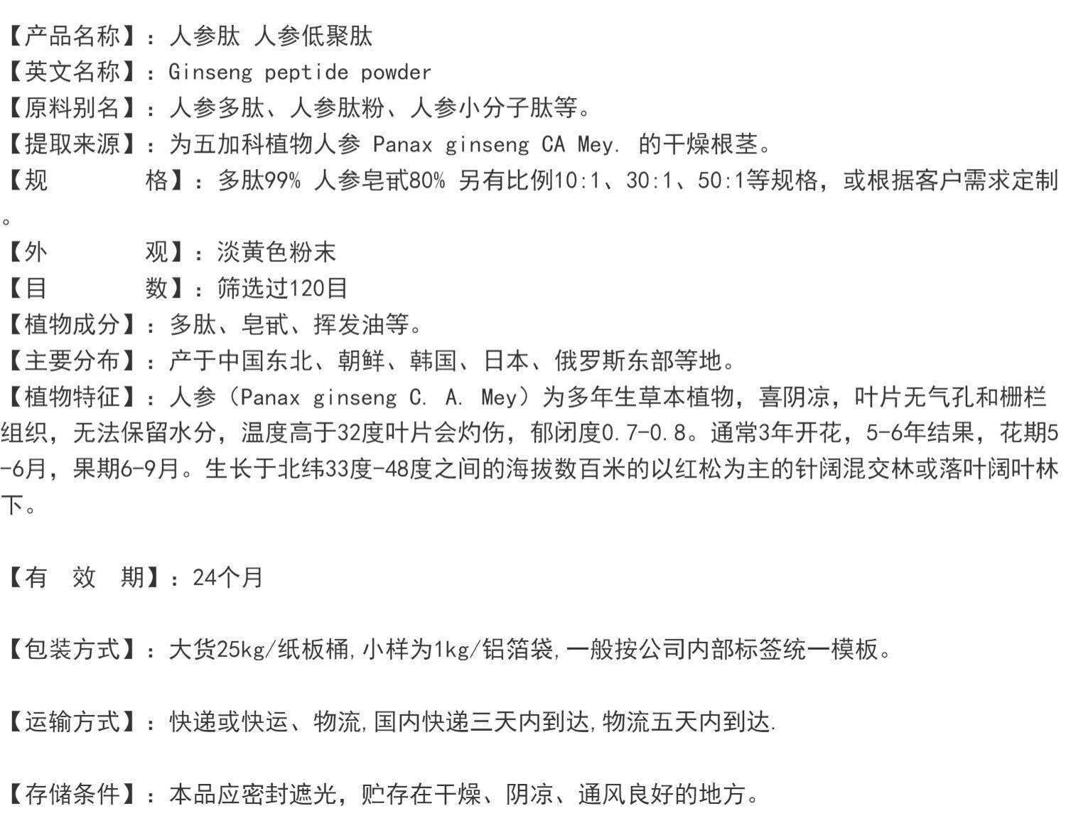 人参肽 食品级人参低聚肽 小分子低聚肽 水溶性易吸收 现货包邮