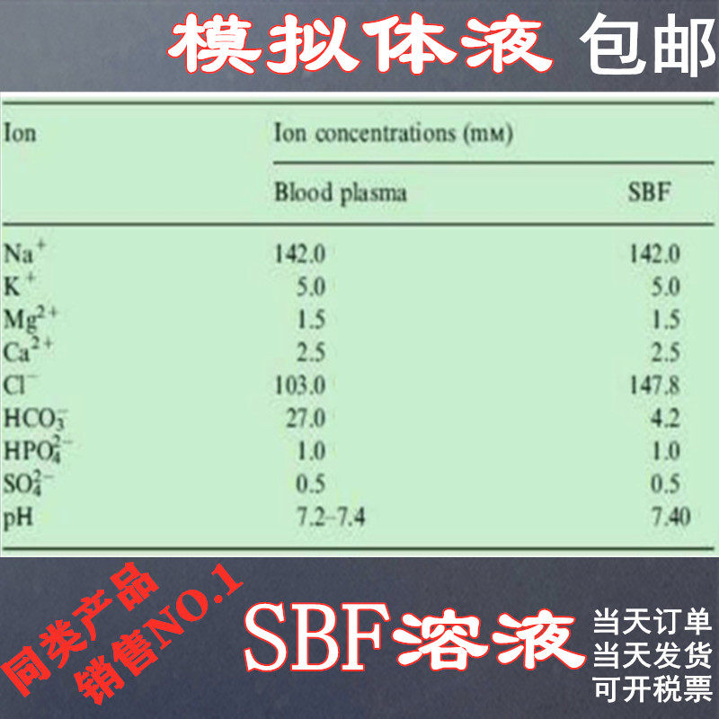 SBF模拟体液 无菌 Simulated Body Fluid 人工合成体液可订制开票