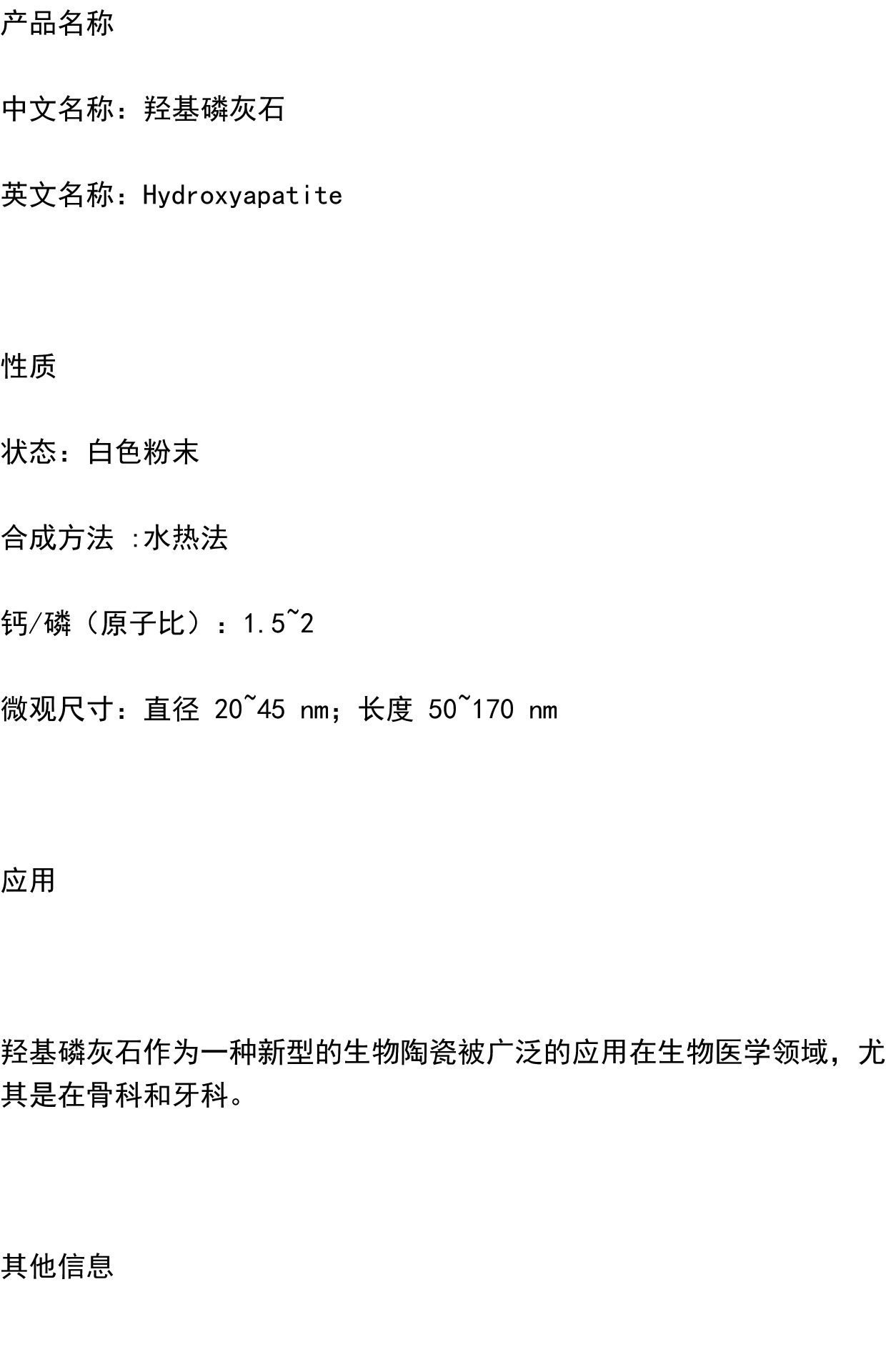 先丰纳米 羟基磷灰石 无机材料 XFI25