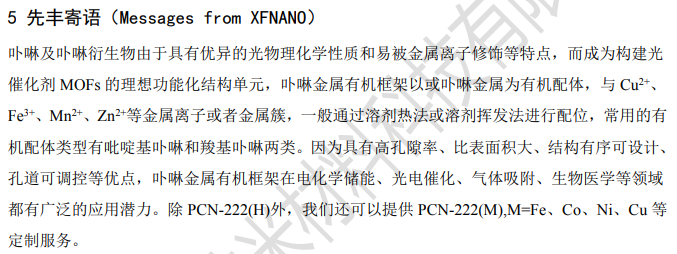 先丰纳米 MOF-545 PCN-222(H) XFF52 有机框架