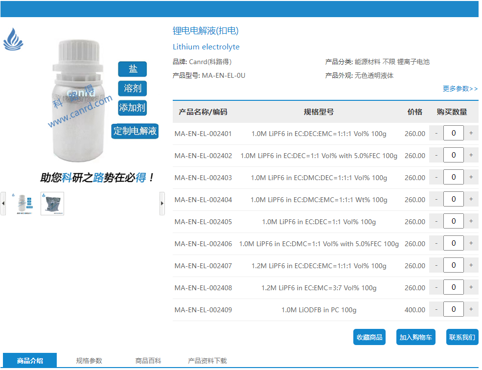 定制电解液【7个工作日发货】 | ¥ 登录可见 | ¥ 登录可见 | 9999 件 | 682699197454 |