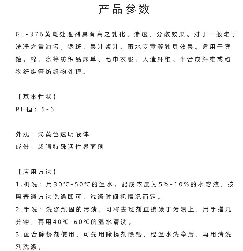 供应 助剂面料黄斑处理剂去除纺织物顽固污渍黄斑去除剂