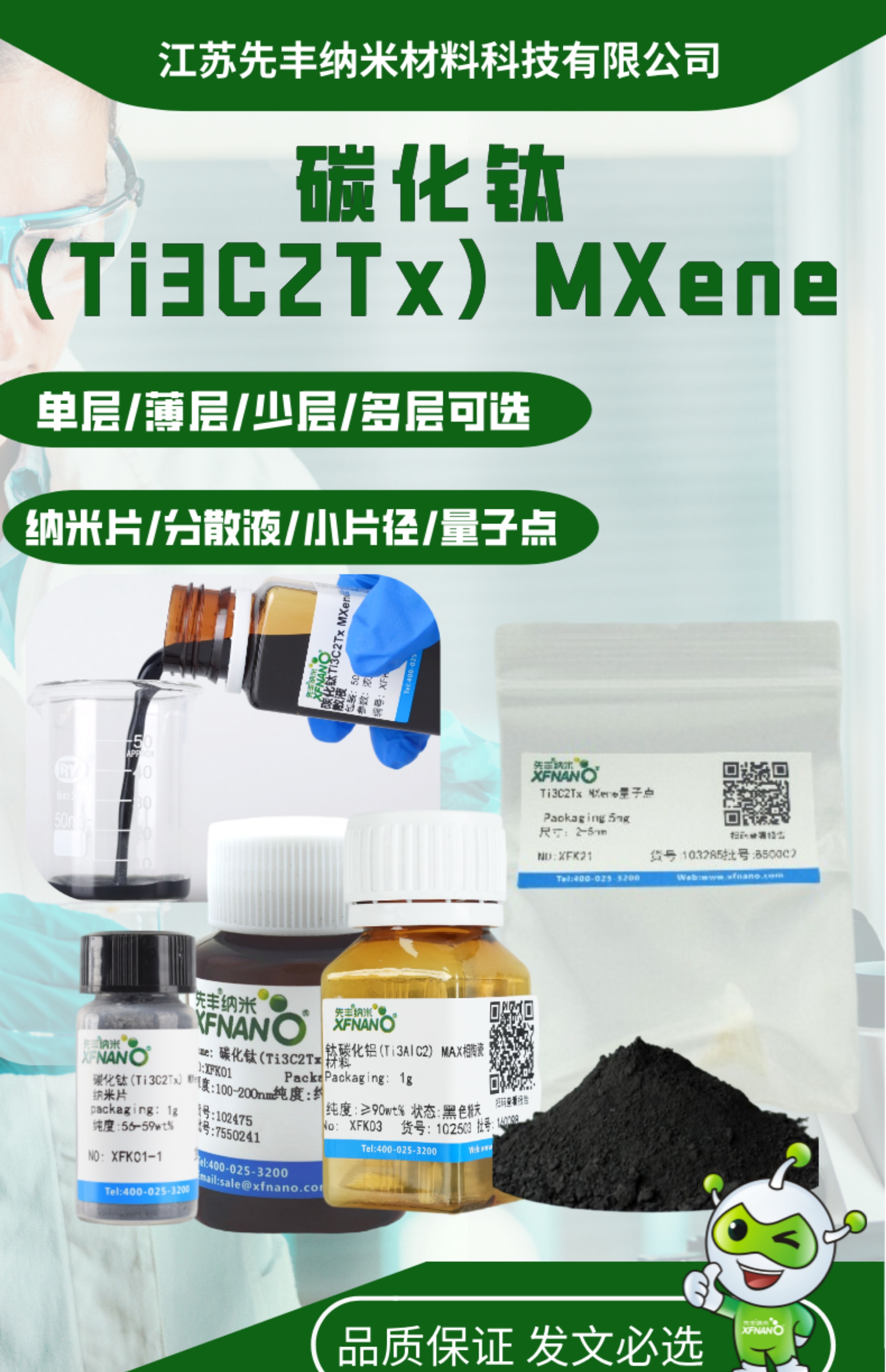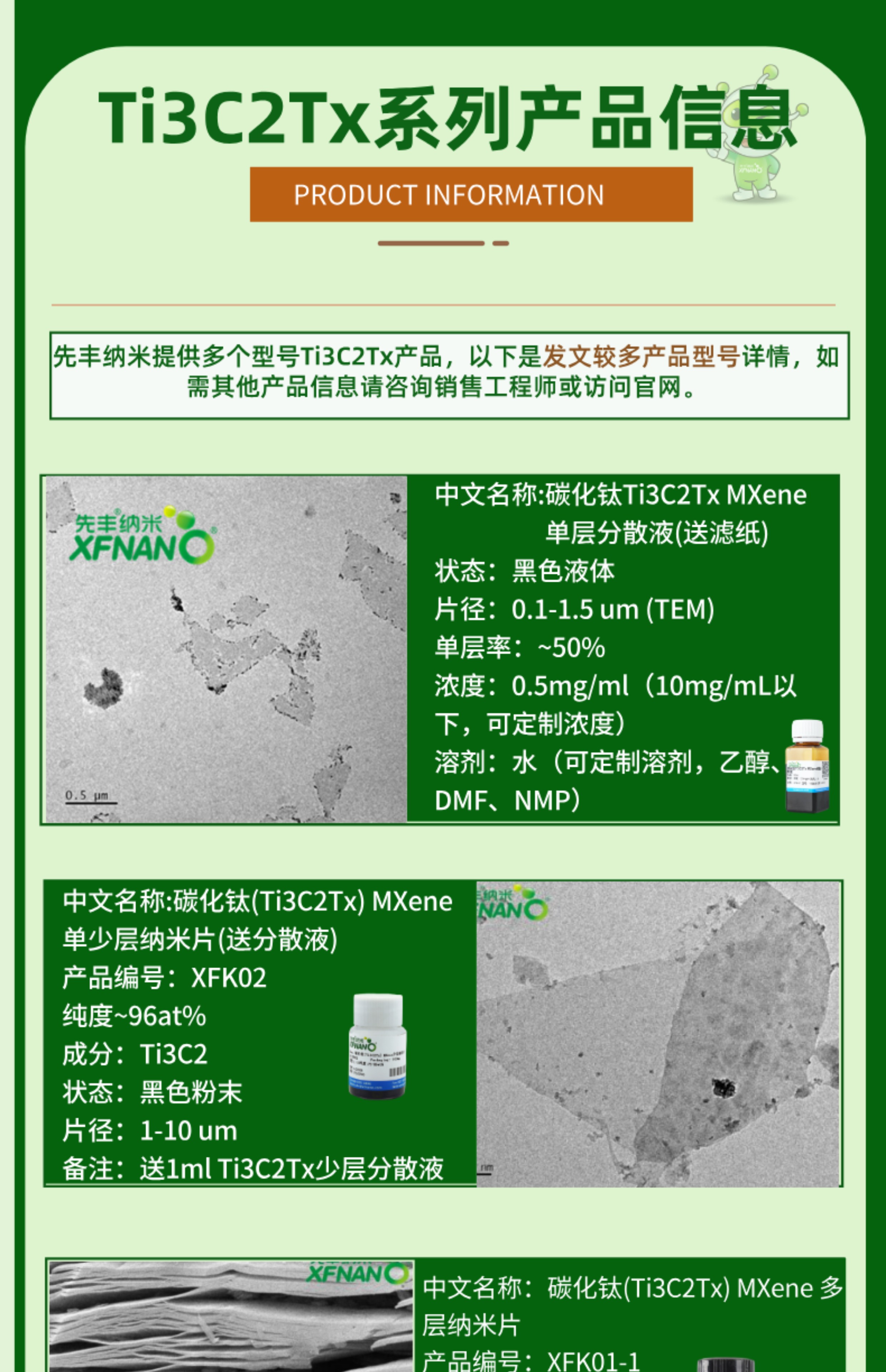 先丰特制1-5nm薄层50mlTi3C2Tx分散液水溶剂2.5mg/ml XFK05 登录可见 登录可见 9999 811950280789