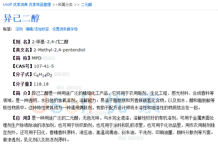 异己二醇 MPD 2-甲基-2,4-戊二醇 溶剂