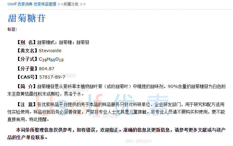 甜菊糖苷 甜菊糖  90%  分装100g  1kg