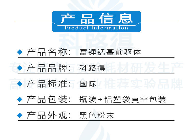 富锂锰基前驱体 三元锂电锂离子电池正极材料 科路得科研能源材料