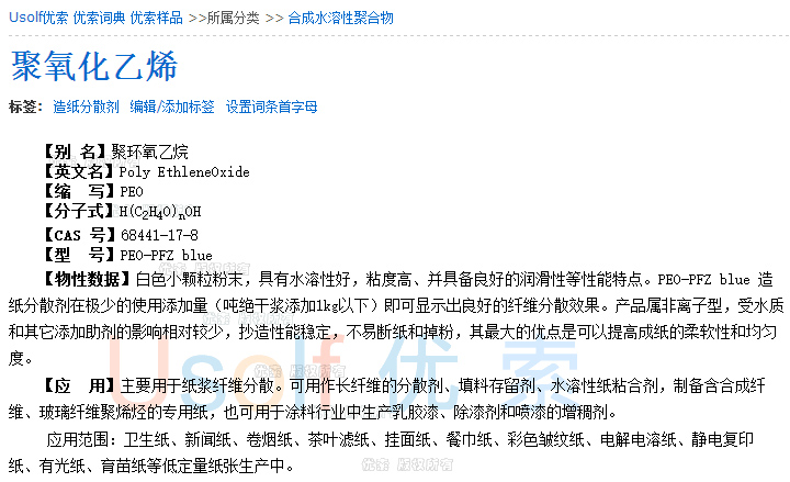 聚氧化乙烯 PEO PFZ blue 造纸分散剂 纤维分散剂