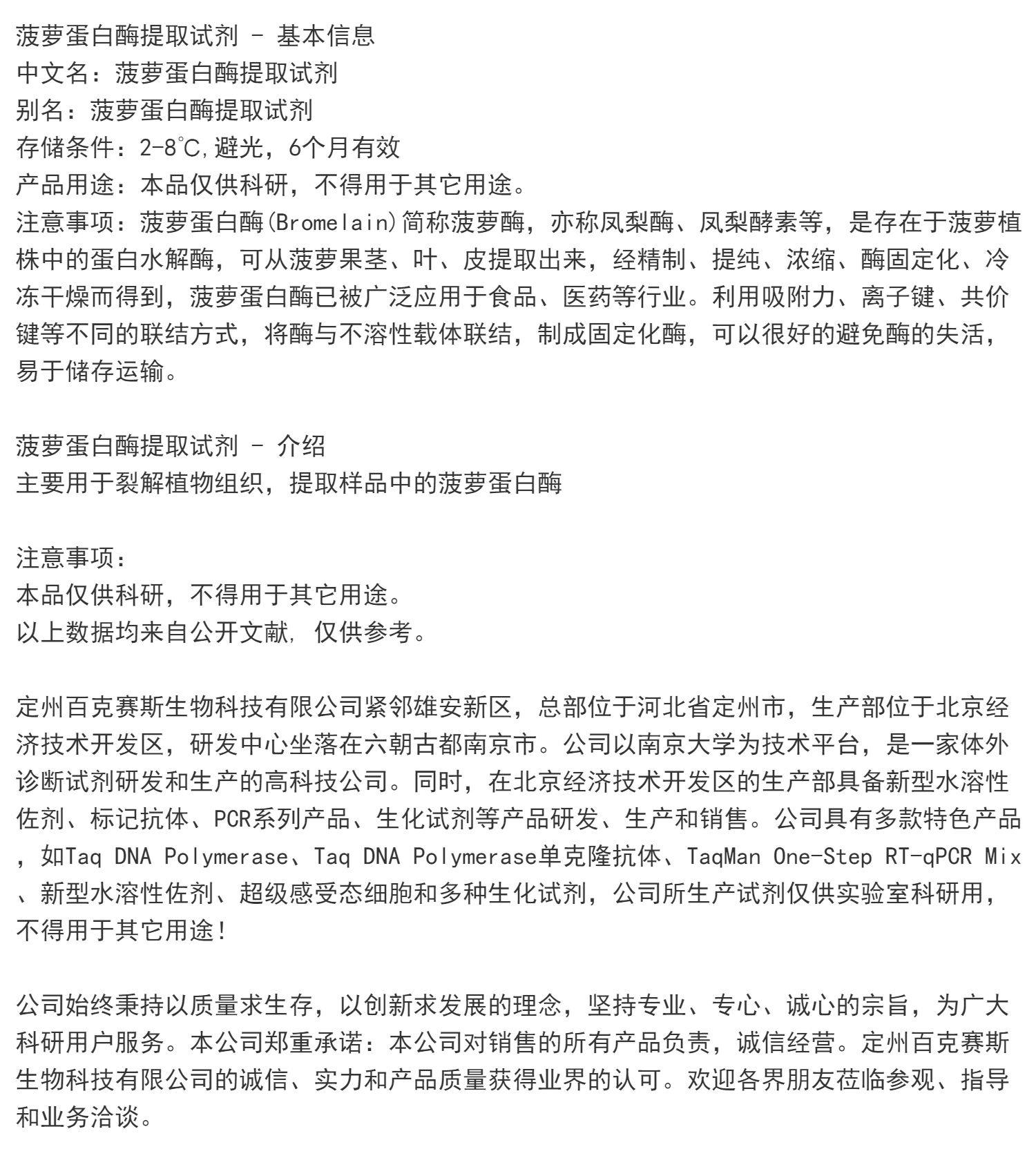 菠萝蛋白酶提取试剂 实验科研试剂 百克赛斯生物