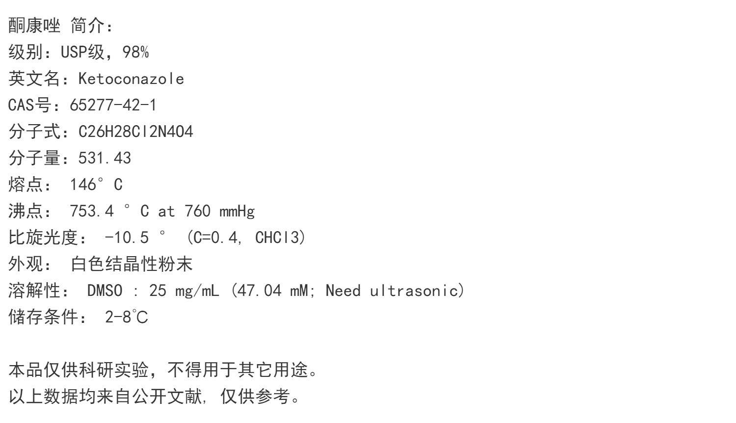 酮康唑 Ketoconazole  实验科研用试剂 CAS:65277-42-1
