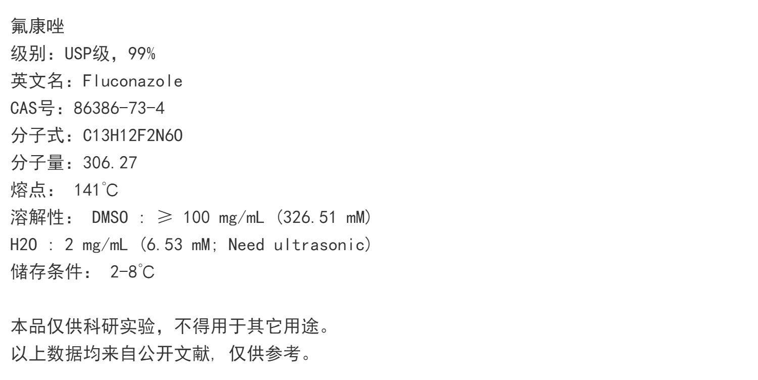 氟康唑 Fluconazole 实验科研用试剂 CAS:86386-73-4百克赛斯生物