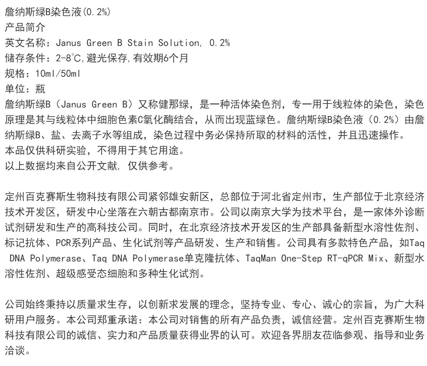詹纳斯绿B染色液(0.2%)实验用科研试剂 百克赛斯生物