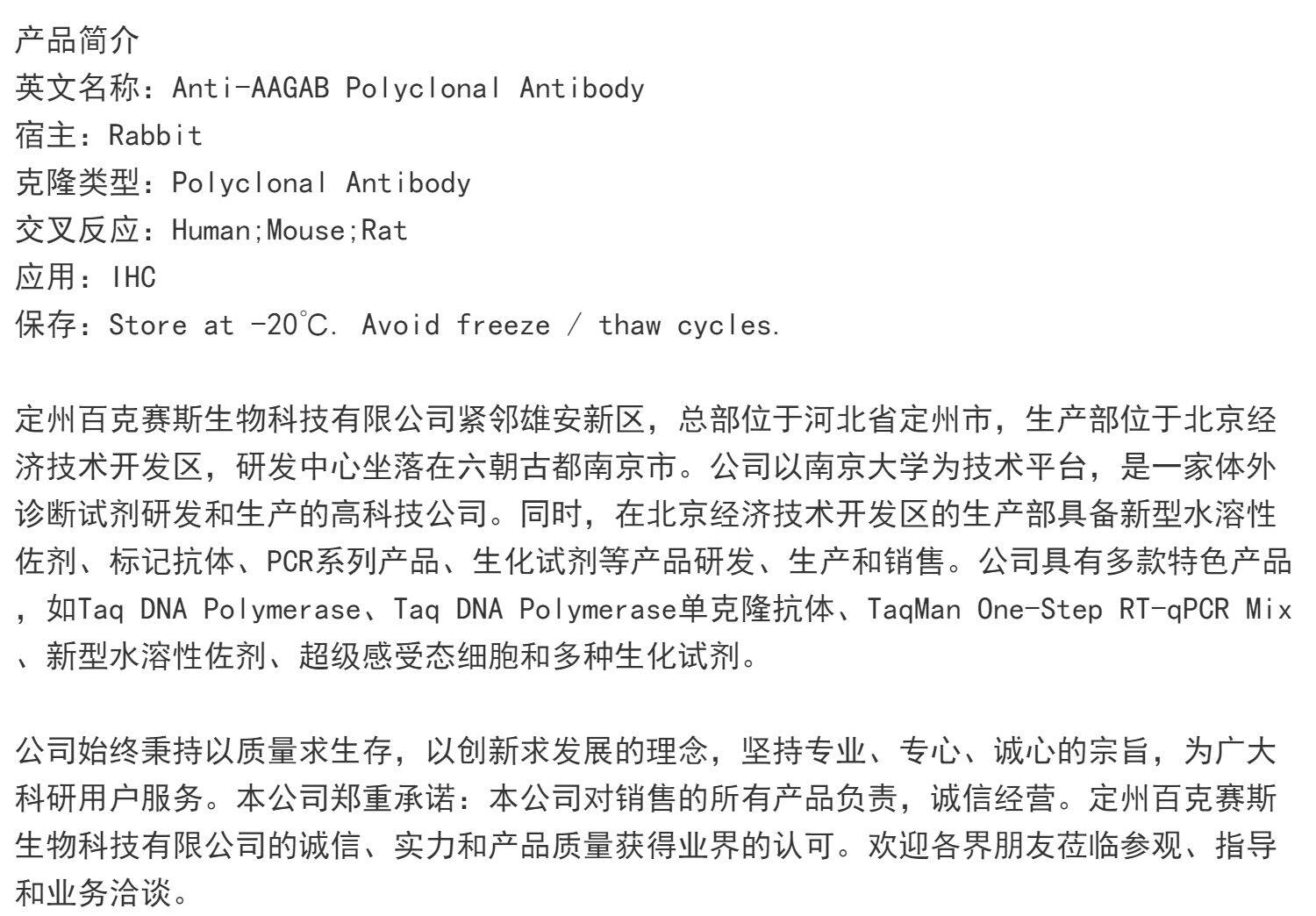 Anti-AAGAB Polyclonal Antibody 实验用多克隆抗体 百克赛斯生物