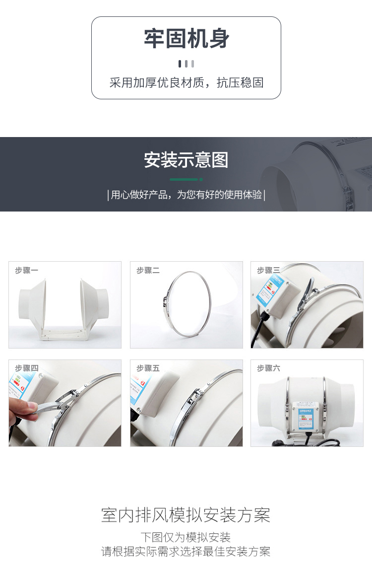 斜流增压管道风机强力静音厨房油烟抽风机6寸卫生间换气排气扇150