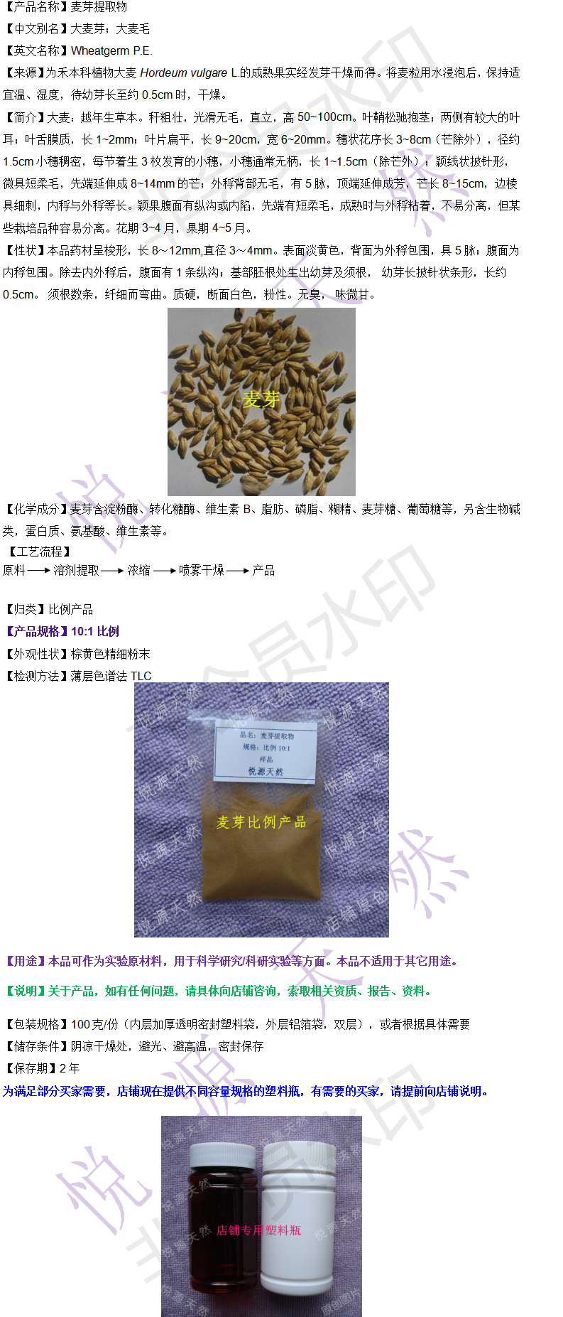 麦芽10:1比例提取 实验用大麦芽萃取浓缩粉 100g 包邮 附赠瓶子