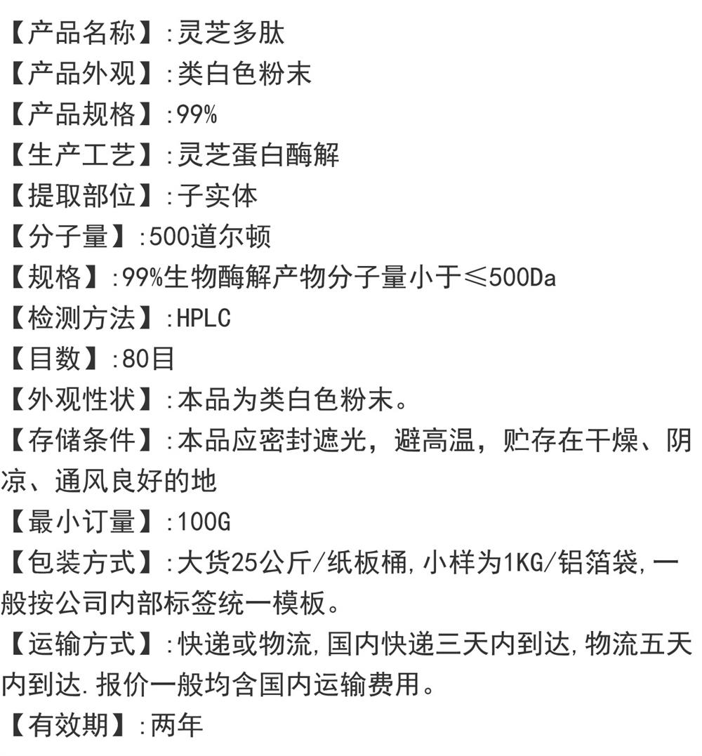 灵芝肽99% 小分子活性多肽500Dal 低聚肽食品级水溶原料 包邮