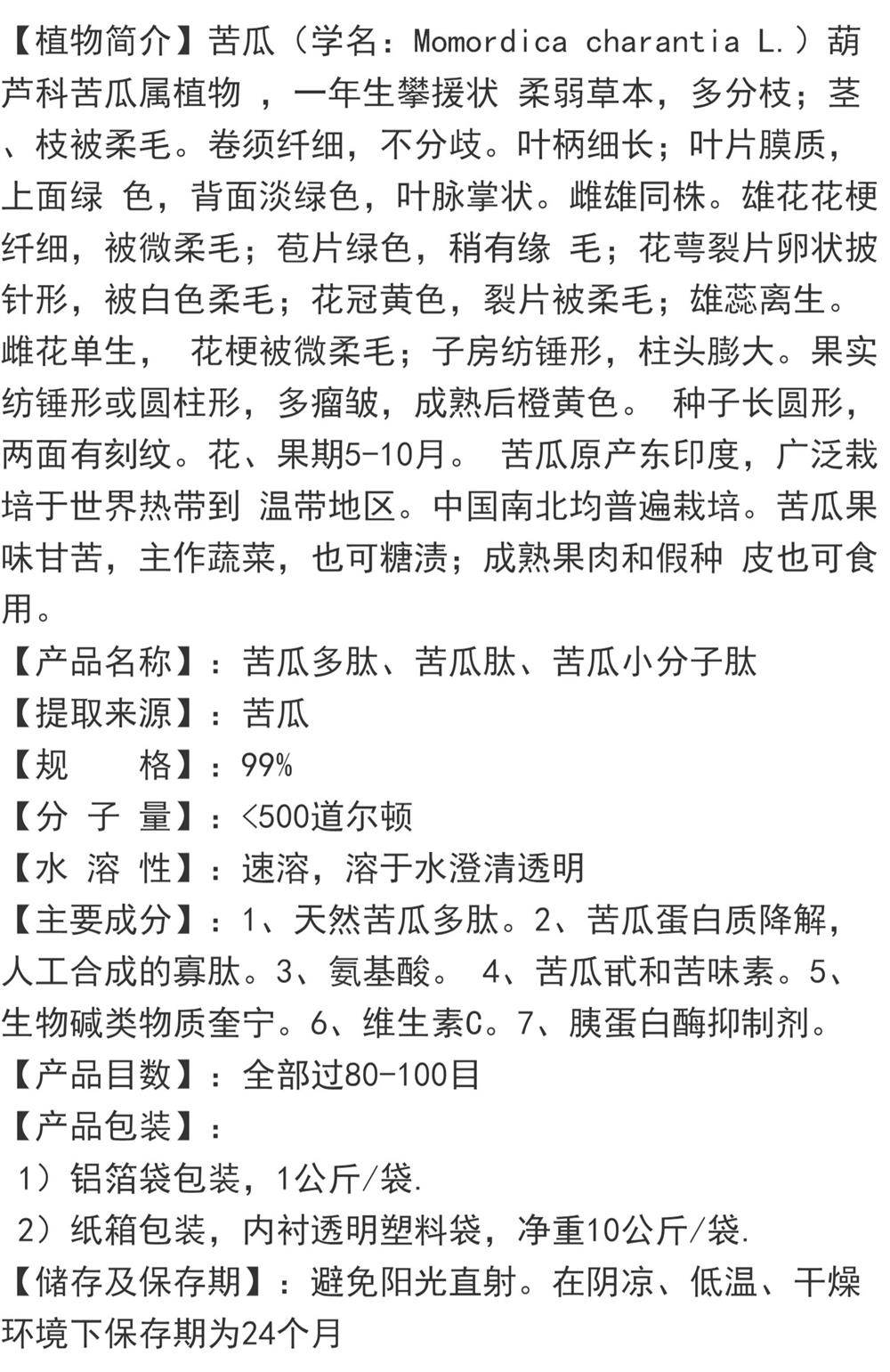 苦瓜肽粉98% 小分子低聚肽500Dal 活性肽 食品级 固体饮料 包邮
