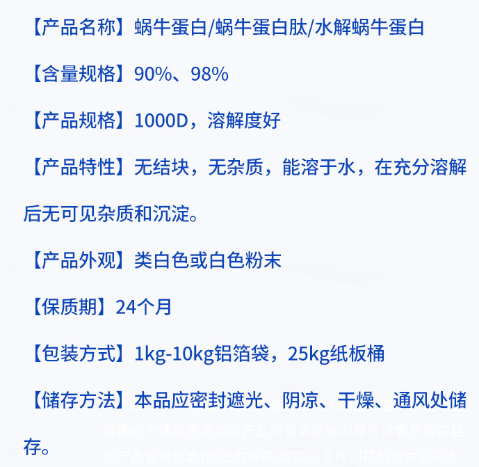 蜗牛蛋白肽 小分子肽 蜗牛肽粉 500DaL 蜗牛蛋白粉 现货包邮