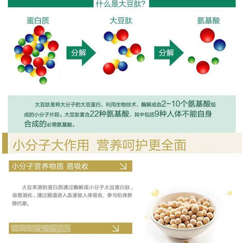 食品级高纯度小分子活性肽非转基因大豆肽粉大豆低聚肽蛋白肽500g