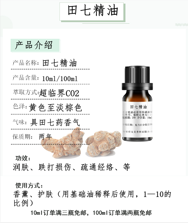 田七精油10ml 药油单方精油 疏通经络按摩刮痧开背 紧实肌肤