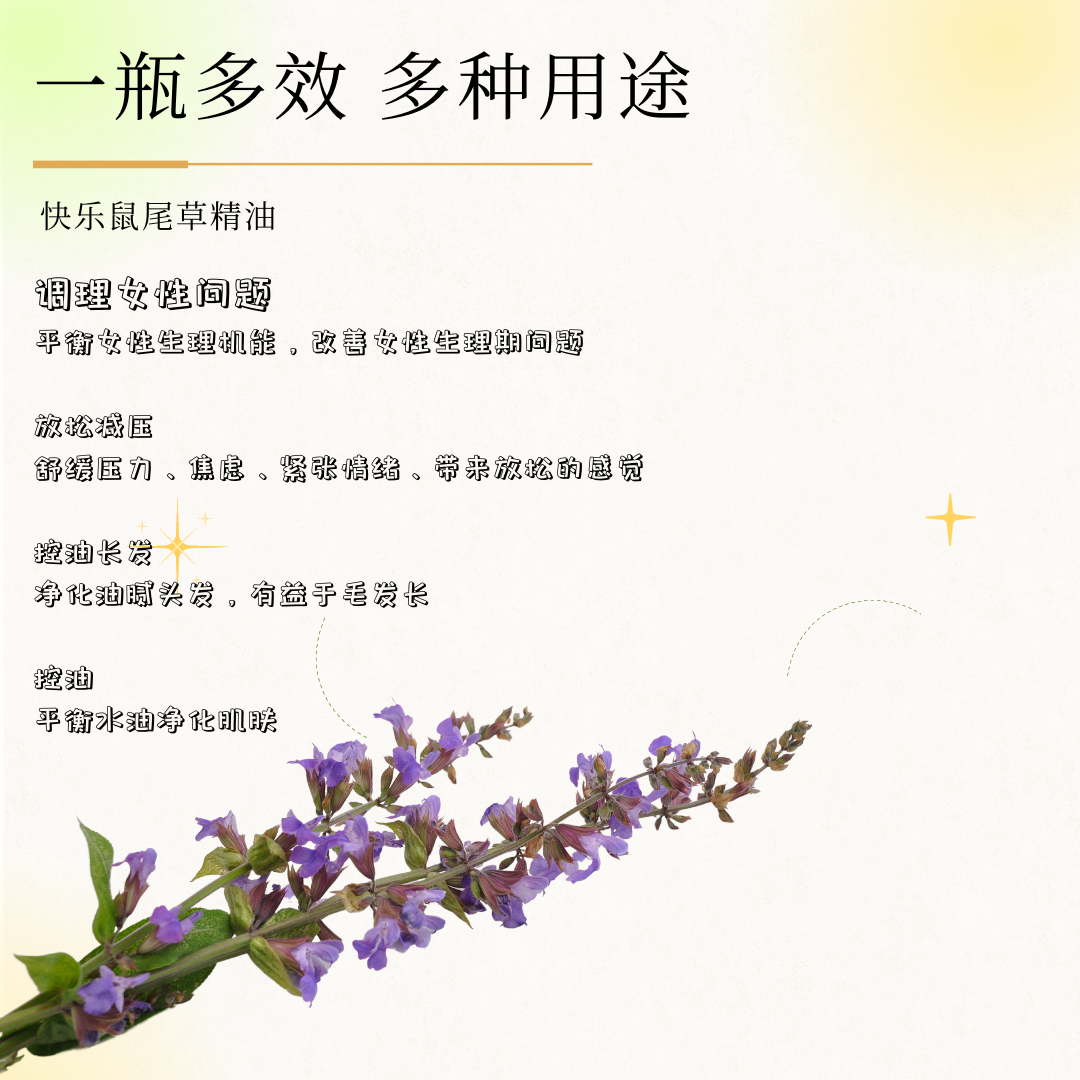 快乐鼠尾草精油10ml 天然植物单方控油收缩毛孔女性呵护 调节平衡