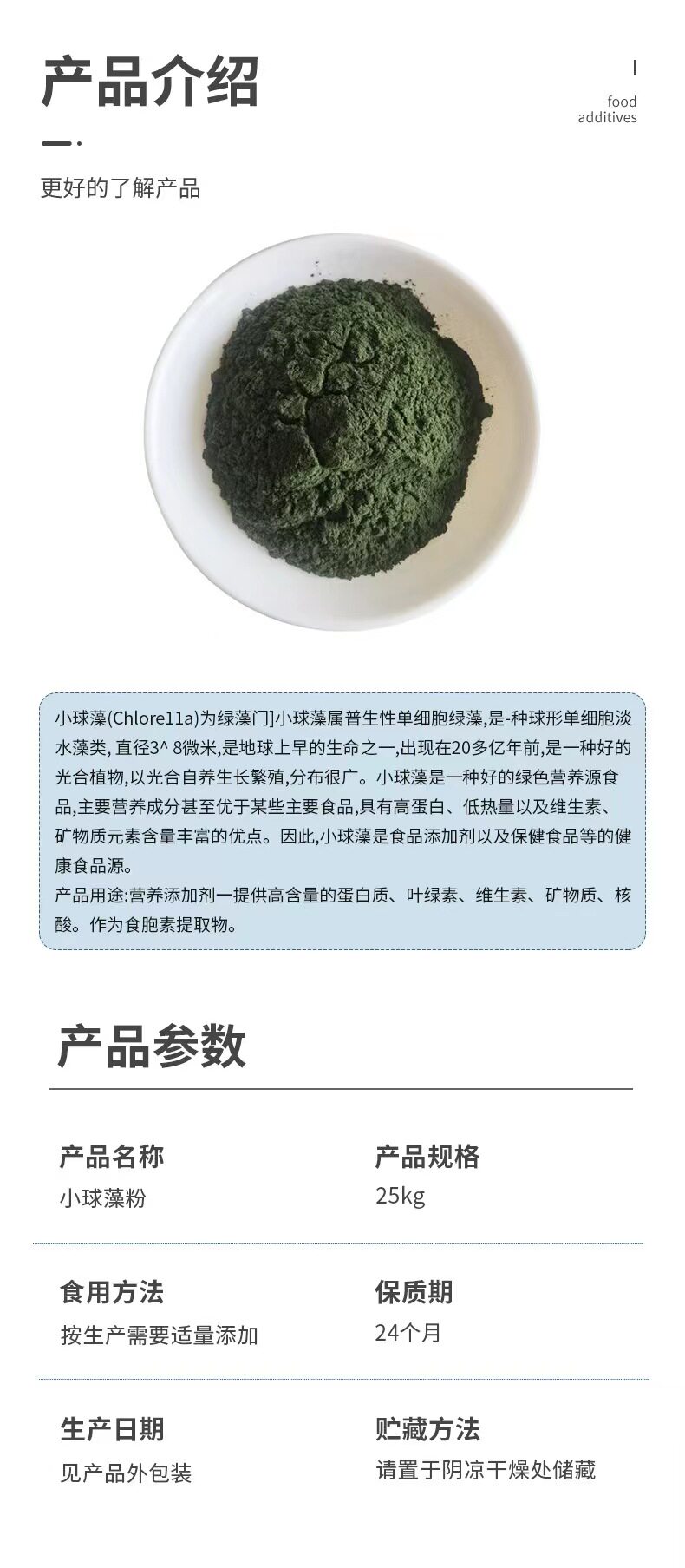 食品级 蛋白核小球藻粉 营养强化剂 纯天然绿藻粉无添加藻粉包邮