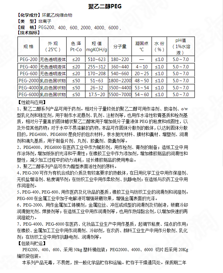 聚乙二醇400 PEG400 PEG600 PEG2000 PEG4000 PEG600