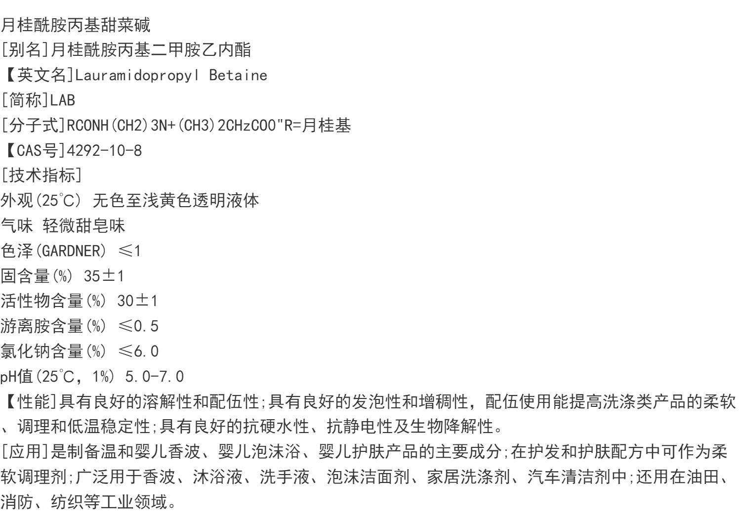 月桂酰胺丙基甜菜碱 LAB-35 分装500g