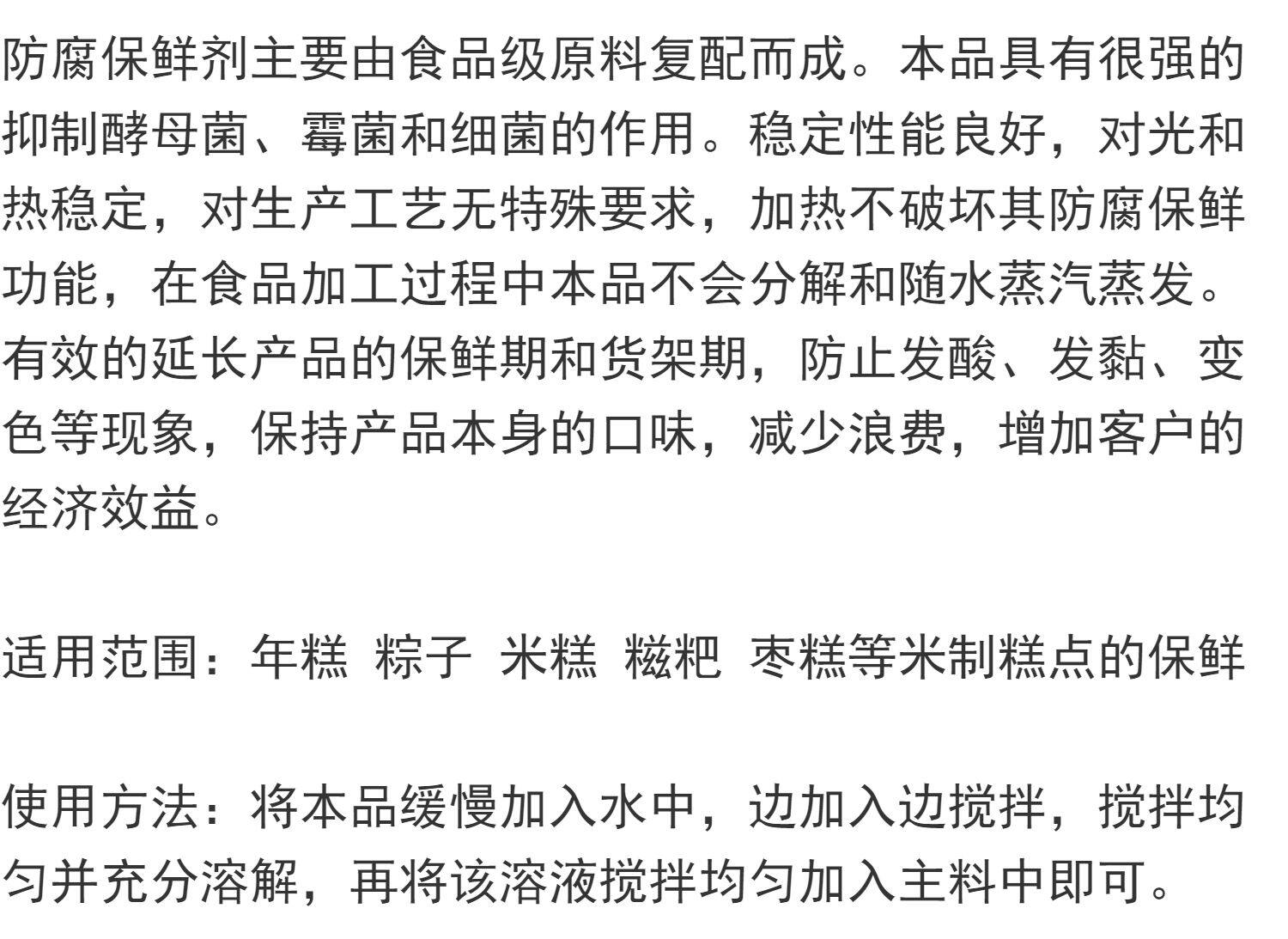 食品级粽子年糕米糕糍粑枣糕防发酸发粘防腐保鲜米制品糕点保鲜剂