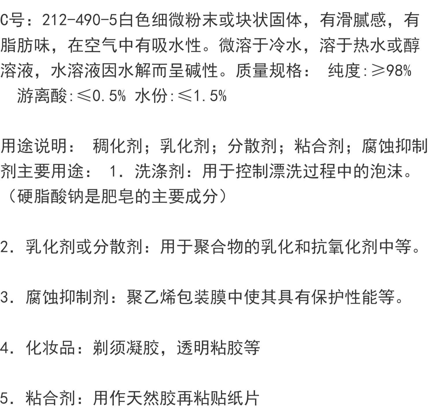 食品级硬脂酸钠 口香糖 基料 化妆品 洗涤增稠乳化粘合腐蚀抑制剂
