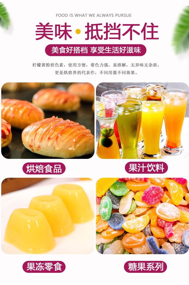 食用柠檬黄色素食品级色素粉状 染色剂 烘焙饮料果汁着色剂添加剂