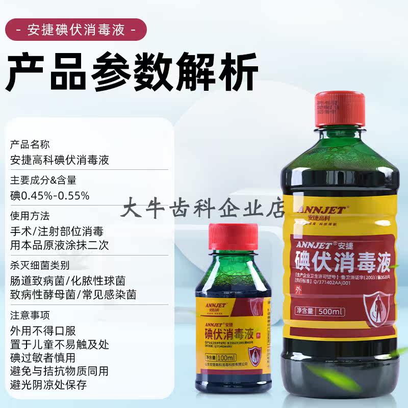 牙科材料 安捷碘伏消毒液500ml口腔齿科碘伏消毒液皮肤消毒液正品
