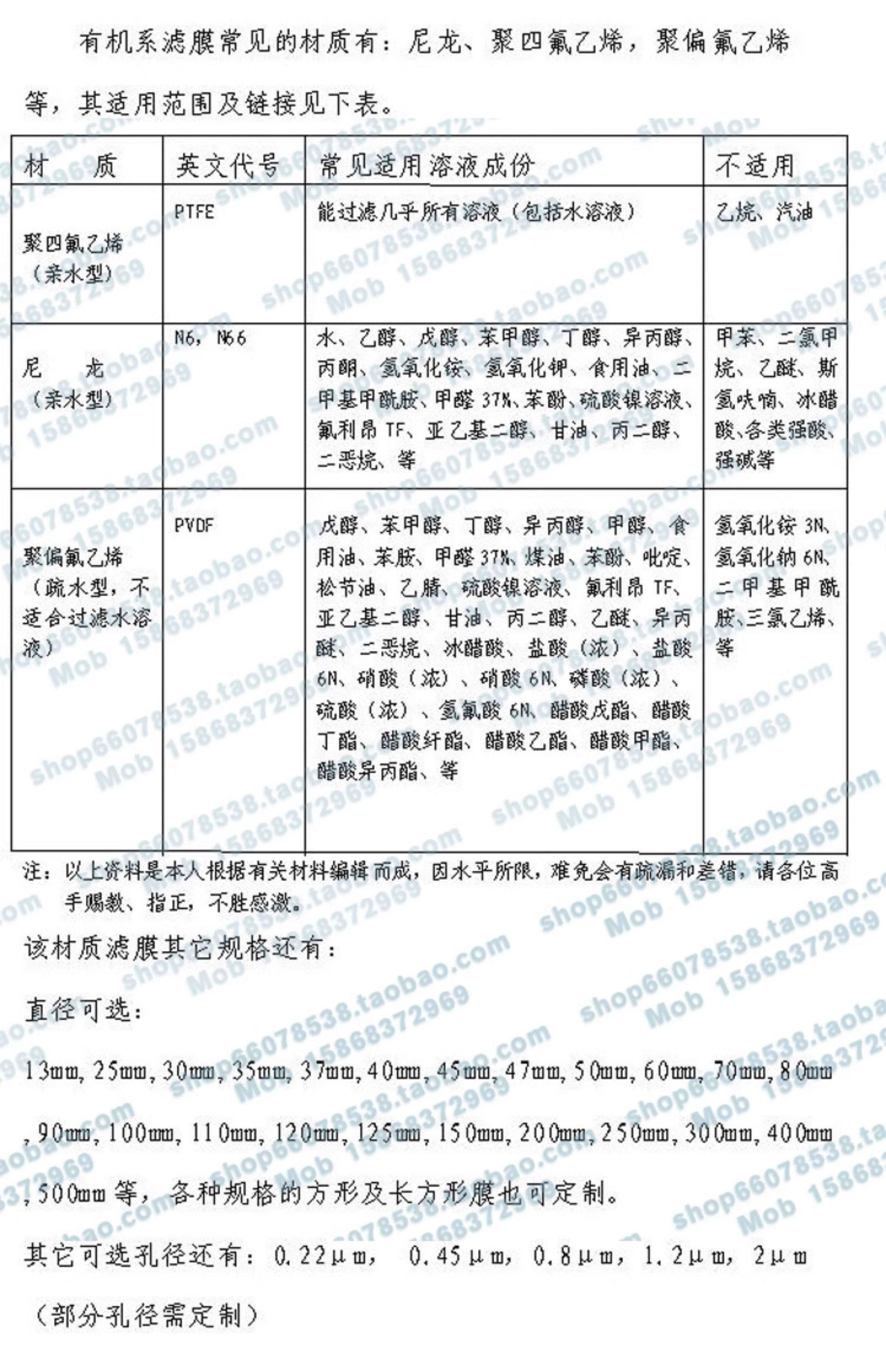 厂家直销耐酸碱性PTFE聚四氟乙烯微孔滤膜有机膜60MM
