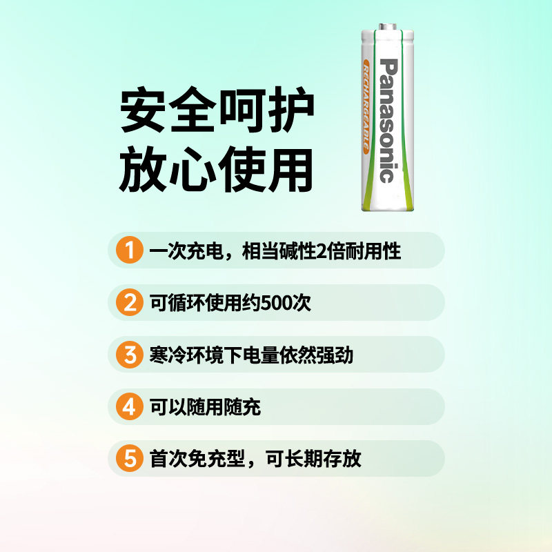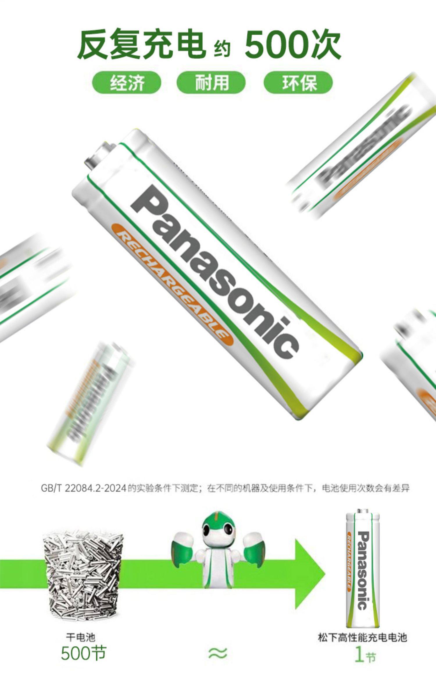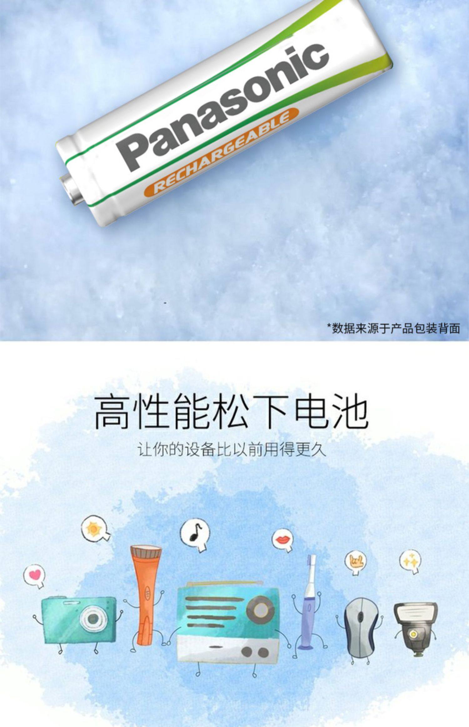 松下5号2节充电电池五号绿色EVOLTA玩具话筒麦克风KTV收音机家用可充电电池两节1.2V镍氢AA电池