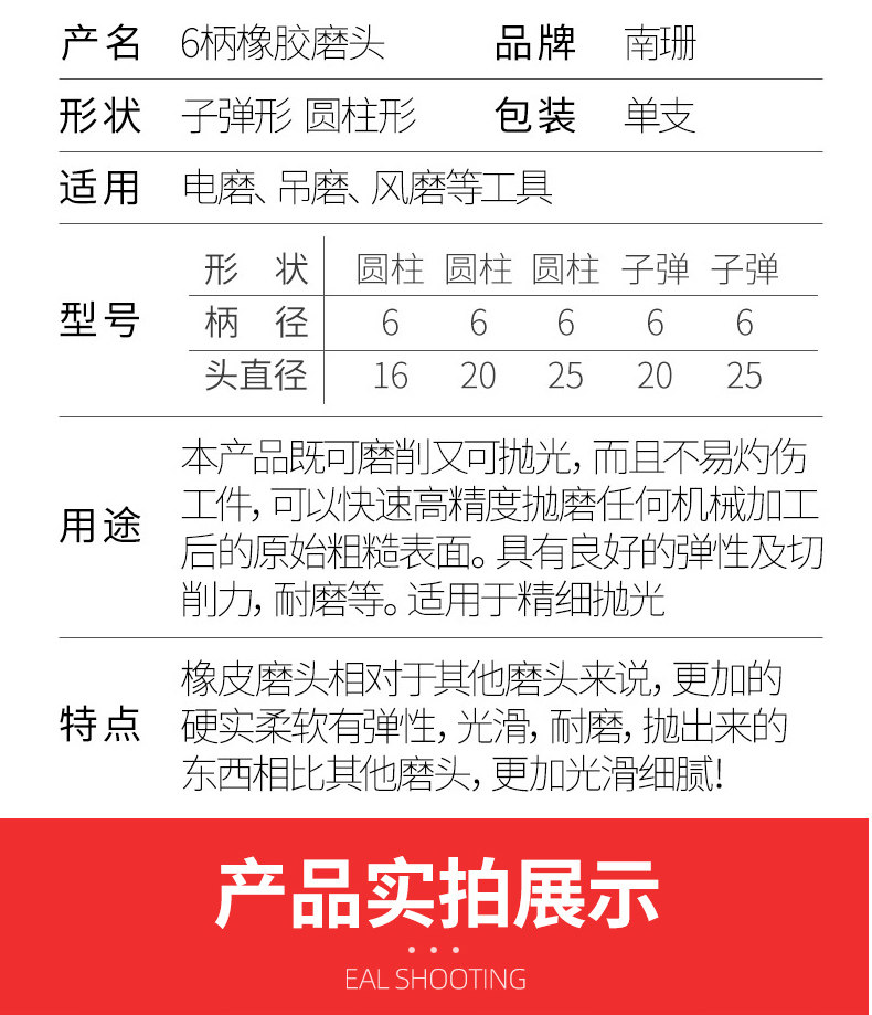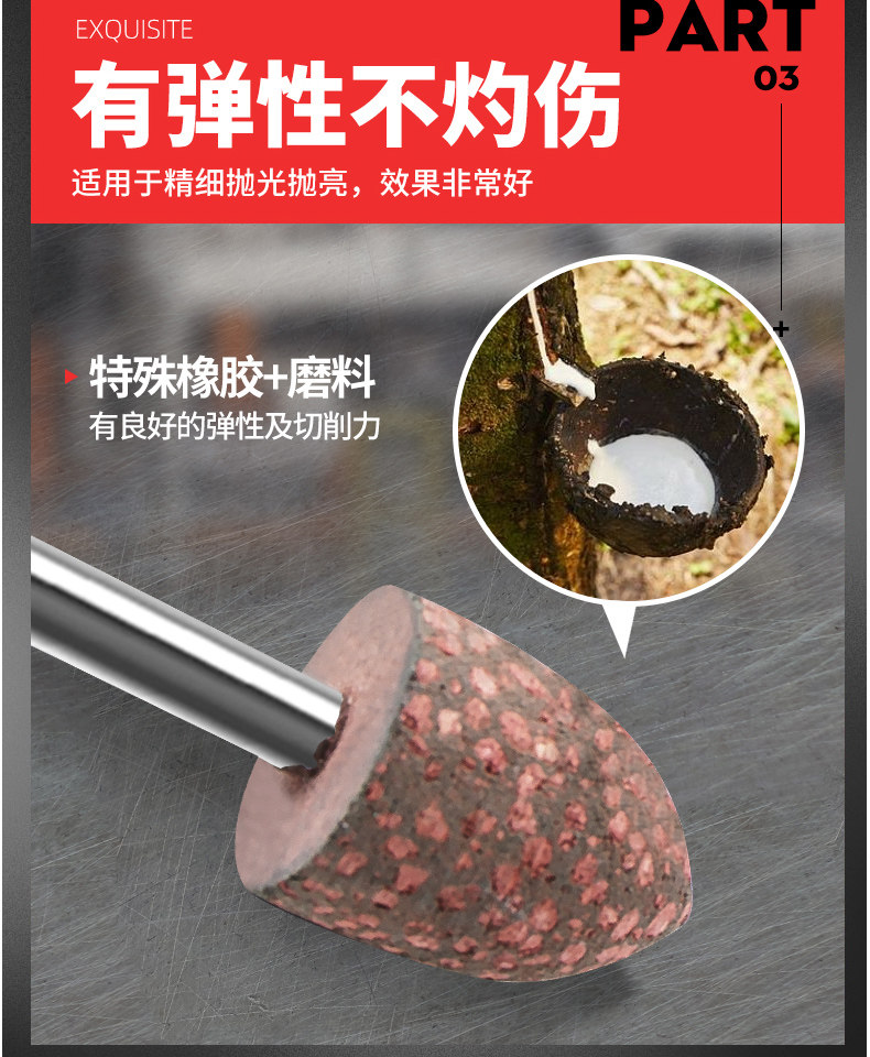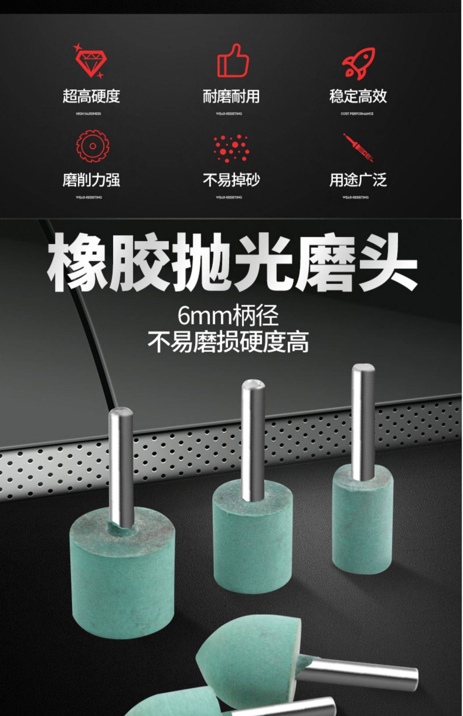 芝麻橡胶磨头6mm橡胶弹性海绵橡胶花大磨头点孔圆柱型16-25mm