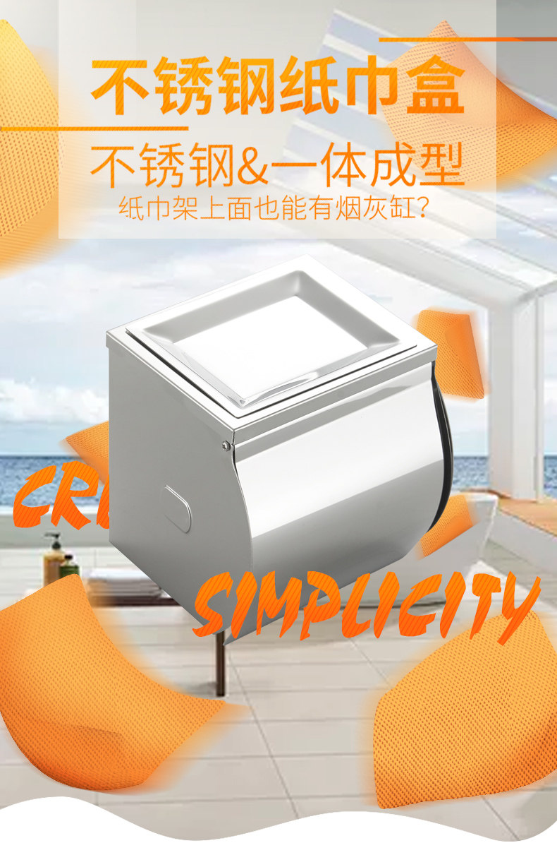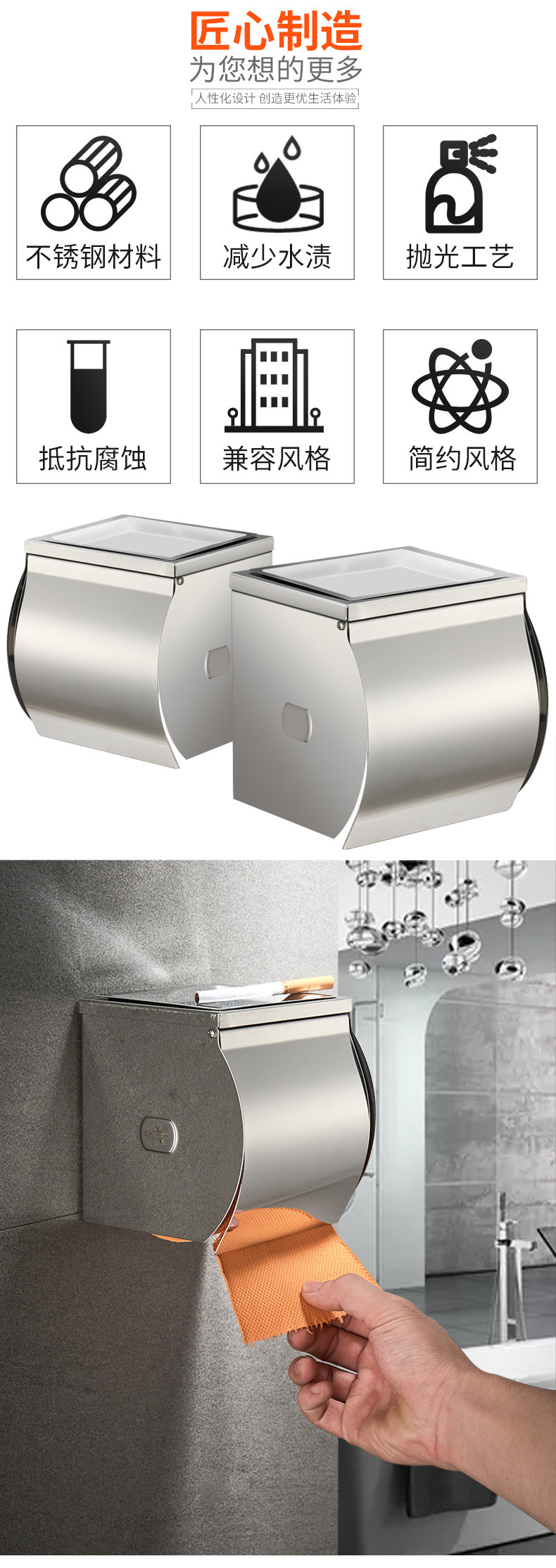 Anmon不锈钢厕纸盒厕所纸巾架卫生间壁挂式手纸盒防水防潮卷纸架