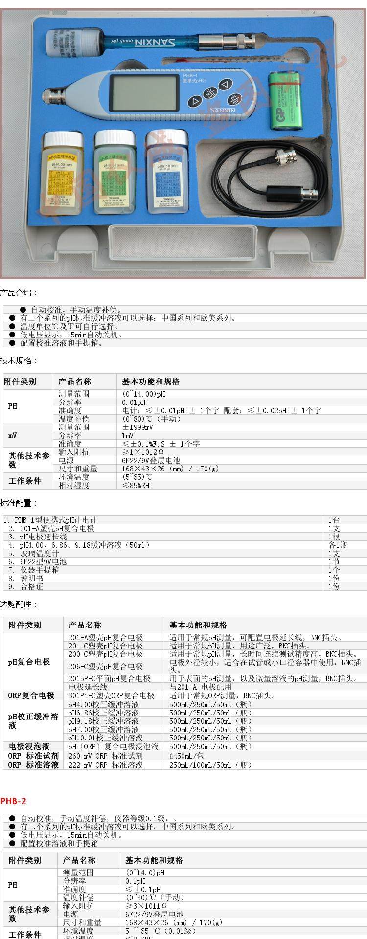 上海三信 PHB-1 PHB-2简易型便携式ph计实验室酸度计 自动校准