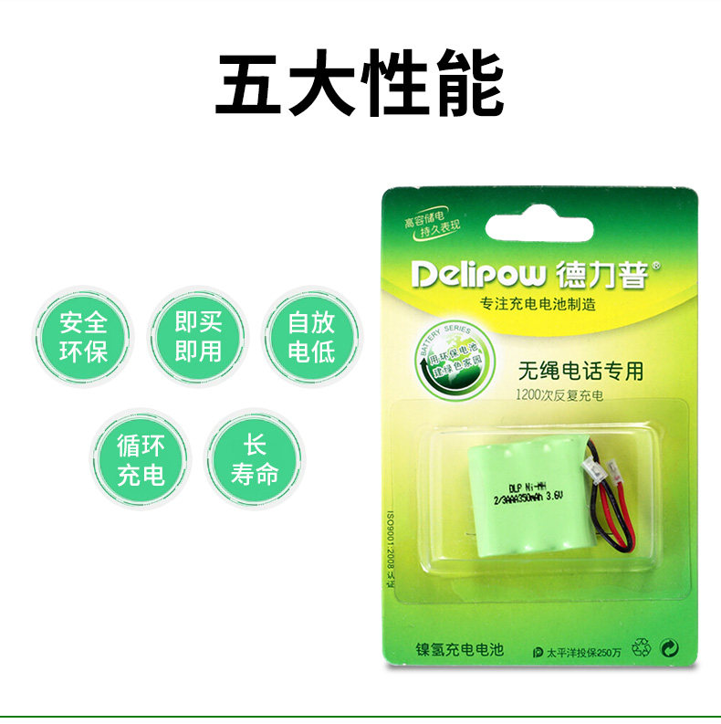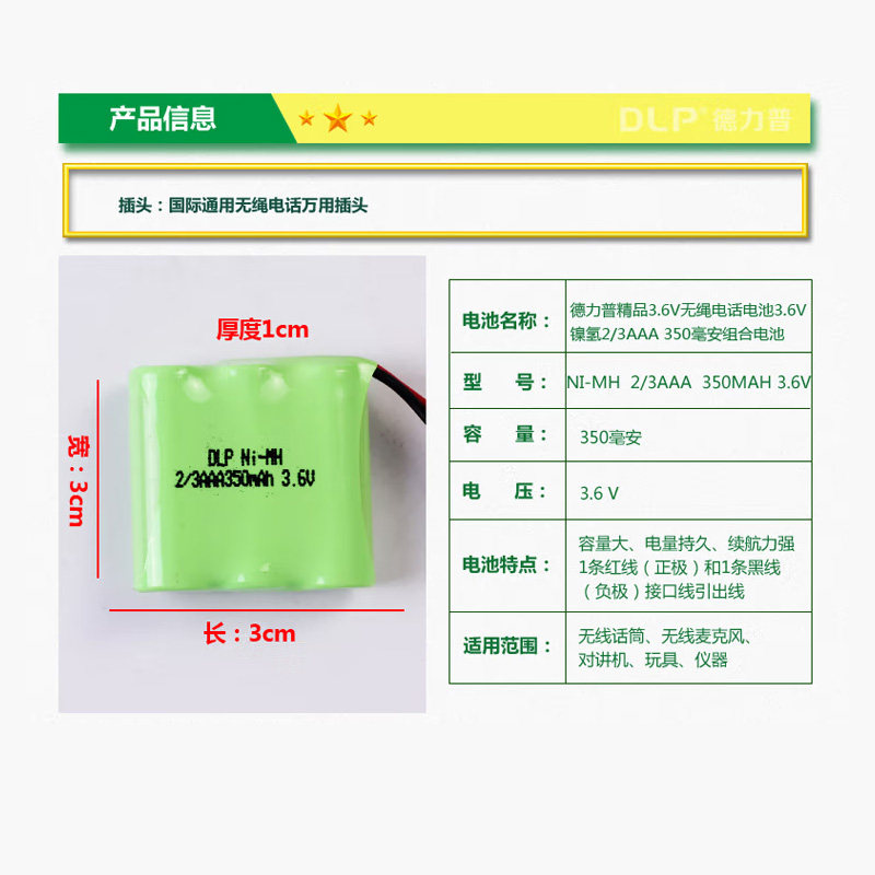 德力普3.6V无绳电话电池子母机2/3AAA350毫安组合电池量大可定制
