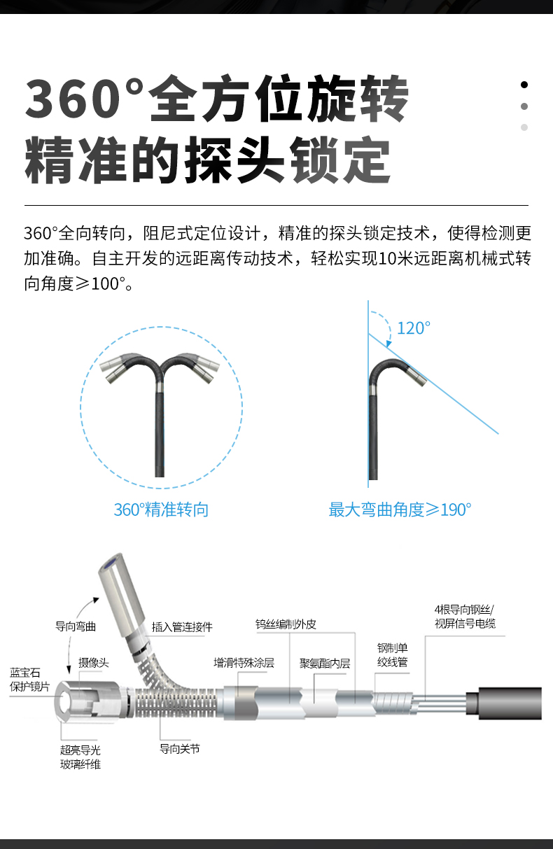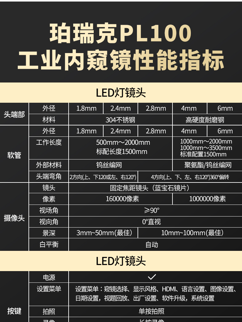 珀瑞克PL100工业内窥镜高清四方向锅炉容器透视镜管道孔探仪器