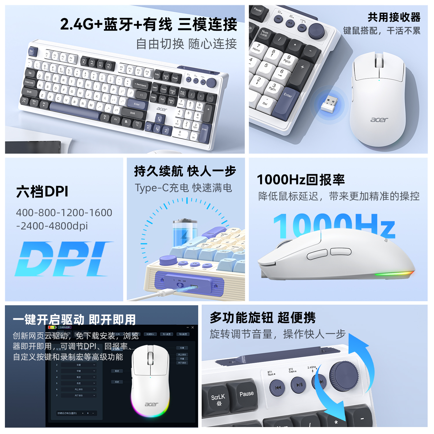 宏碁无线蓝牙三模键盘鼠标套装办公游戏台式笔记本电脑通用键鼠