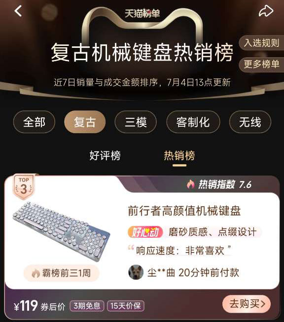 官方标配 | 否 | 104键 | 机械轴体 | ¥ 登录可见 | ¥ 登录可见 | 9999 件 | 679276682040 |