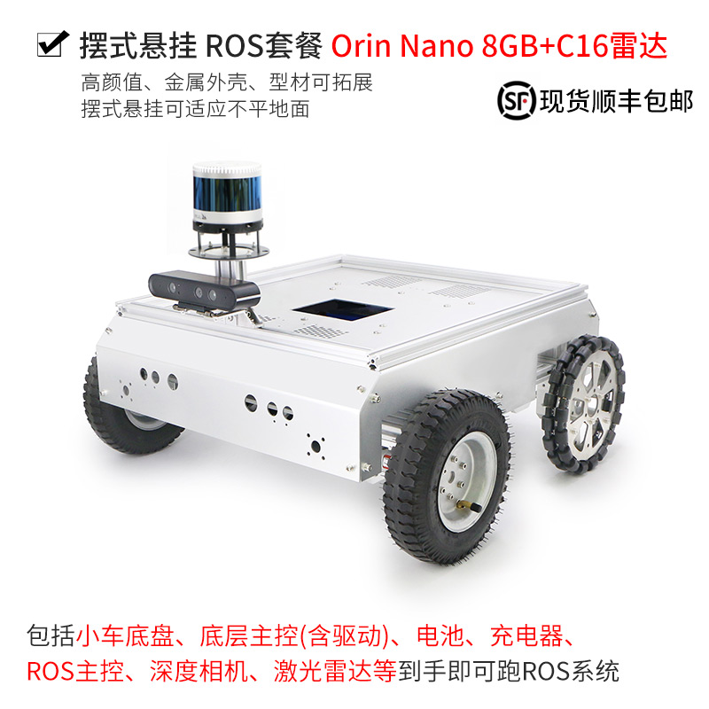 S200无刷电机轮毂四驱车ROS机器人雷达3D建图导航自动驾驶无人车